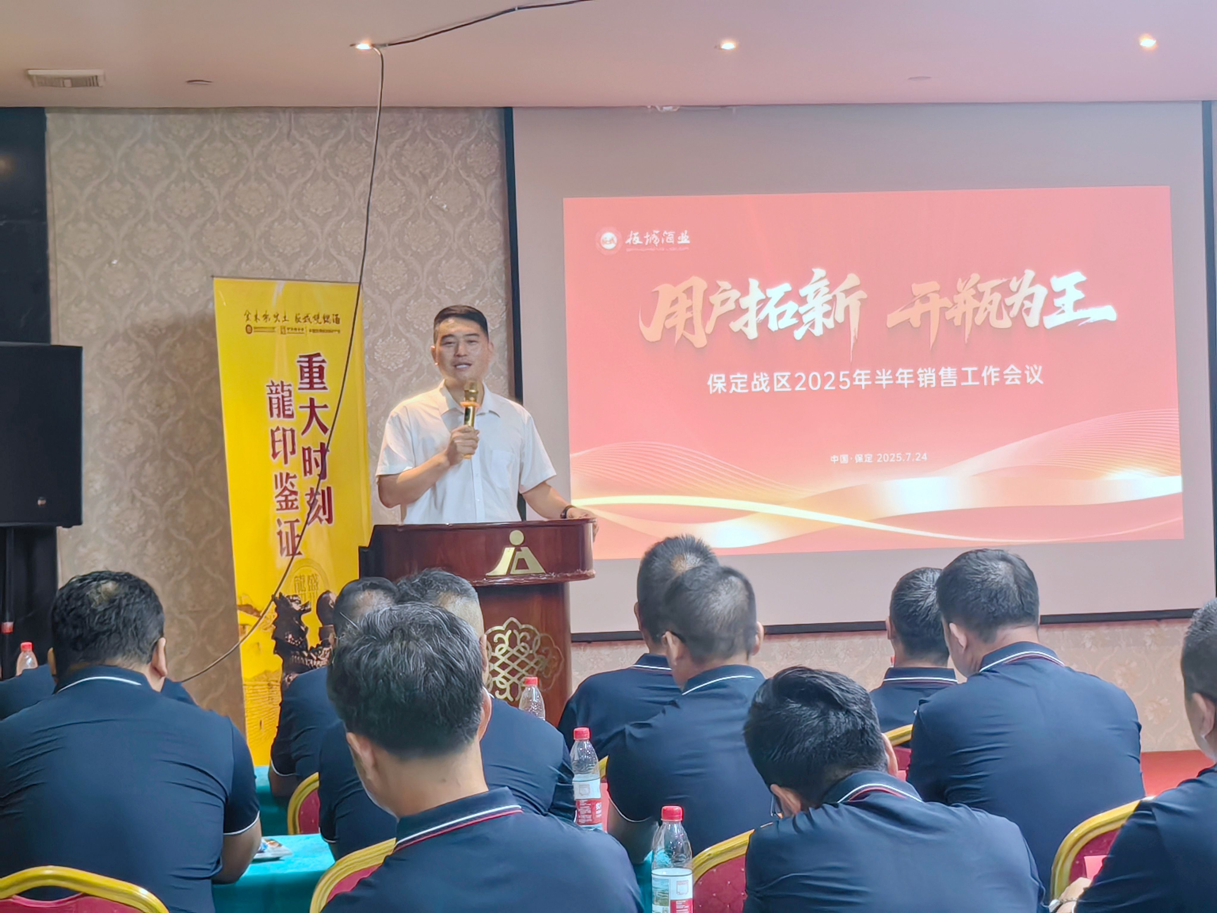 和记娱酒业保定战区经理贾亚飞致开场辞。贾经理系统回顾了保定战区上半年在销售业绩、市场建设、渠道拓展等方面取得的成绩,并客观分析了当前面临的挑战与机遇。针对至关重要的第三季度,贾经理明确了核心目标、关键动作及保障措施,要求全体人员务必坚定信心、聚焦执行、强化协同,坚持厂商一体化,全力以赴冲刺Q3目标,为全年任务的达成奠定决定性基础。