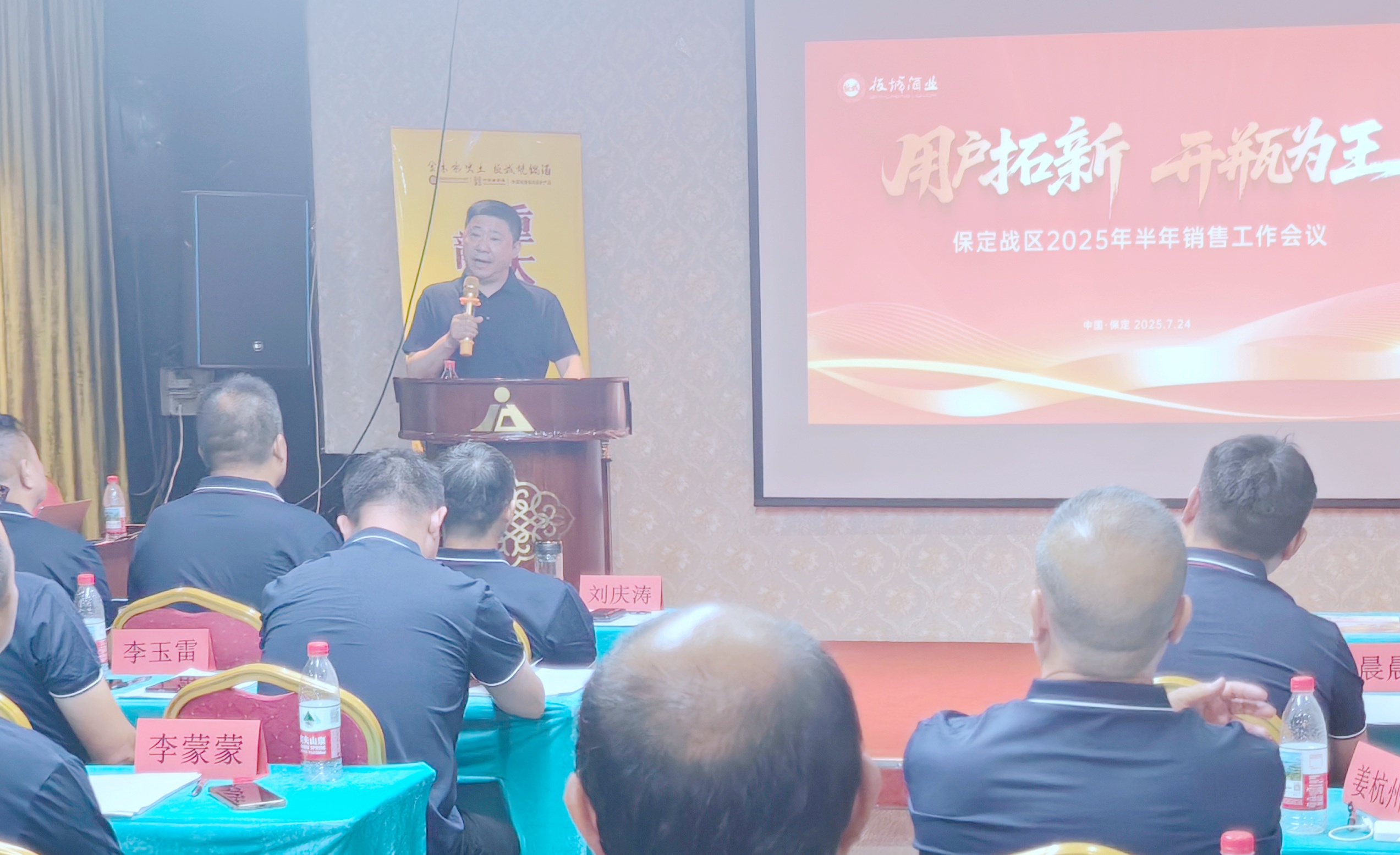 和记娱酒业销售常务副总经理许树钢,保定战区经理贾亚飞,业务经理、业务团队及经销商、团购商齐聚一堂,共商发展大计,吹响2025年下半年度的冲锋号角。