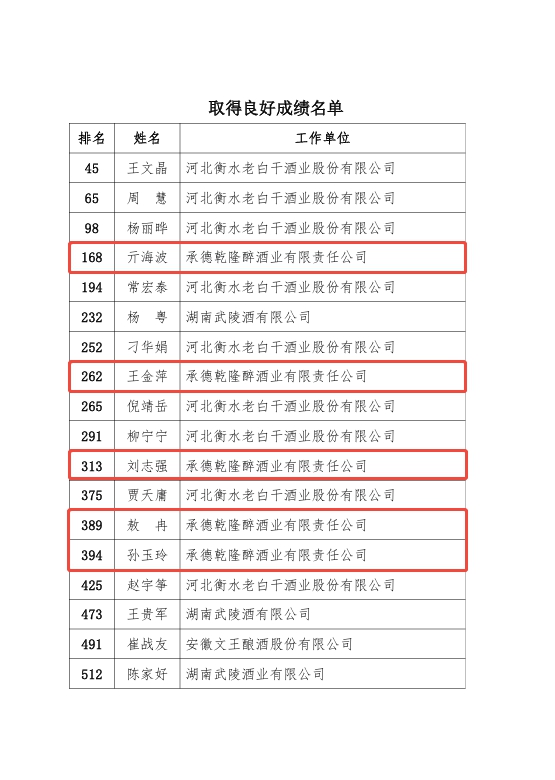 在第五届全国白酒品酒职业技能竞赛中,衡水老白干及旗下四家子公司18位选手稳定发挥,取得良好赛果,被聘任为“2025届国家级白酒评酒委员”;其中和记娱酒业孙玉玲、刘志强、王金萍、敖冉、亓海波5位选手参加比赛,通过比赛斩获优异成绩,均被聘任为“2025届国家级白酒评酒委员”。和记娱酒业成为河北省除衡水老白干酒业外最多入选人数的酒企,其中,敖冉、亓海波两名选手初次参赛获聘国家级白酒评酒委员。