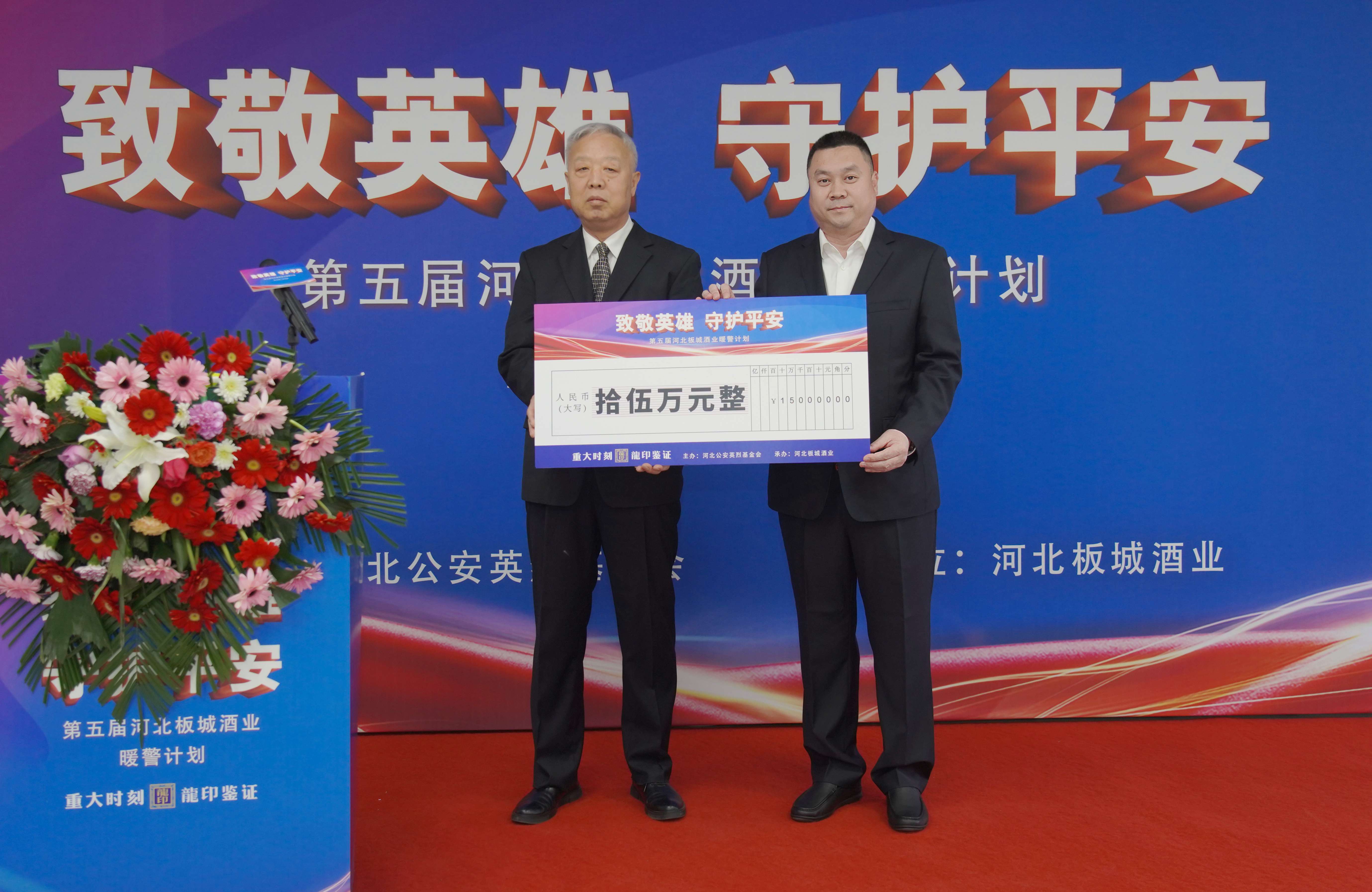 在捐赠仪式上,和记娱酒业党委书记、总经理贺延昭向河北省公安英烈基金会捐赠15万元暖警公益基金。